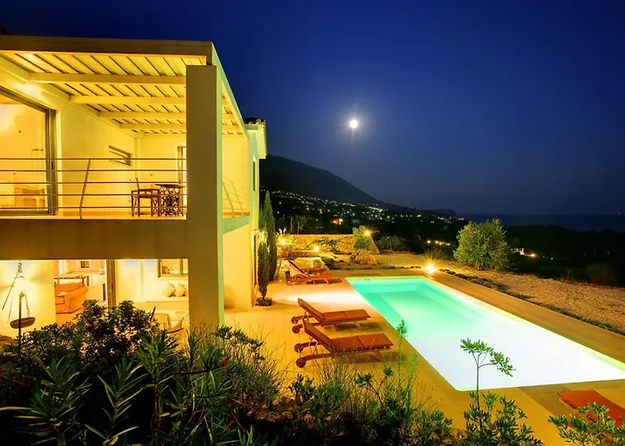 Die am Strand Villa Nautilos Ideales Resort Mousata liegt ungefähr 4 km von der Burg Agios Georgios entfernt und bietet Gästen eine Terrasse.